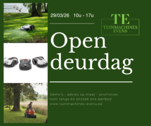 Op zondag 29 maart 2026 organiseert Tuinmachines Evens een opendeurdag rond robotmaaiers en tuinmachines. Iedereen